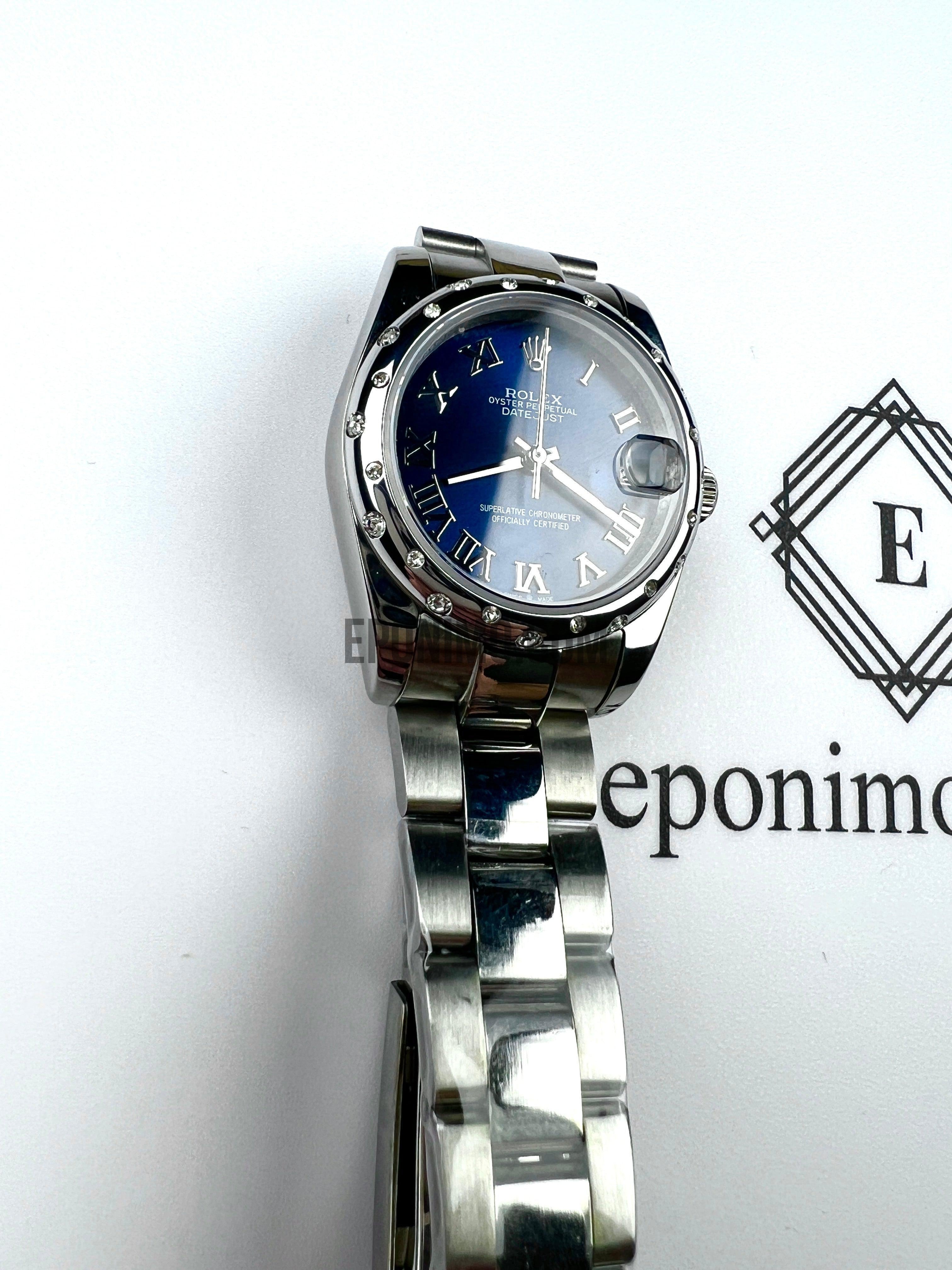 Με 31 χιλιοστά διάμετρο, γυναικείο, κατασκευασμένο εξ'ολοκλήρου από συμπαγές ανοξείδωτο ατσάλι. Φοράει αντιχαρακτικό κρύσταλλο ζαφειρίου και αυτόματο μηχανισμό. Αδιάβροχο.