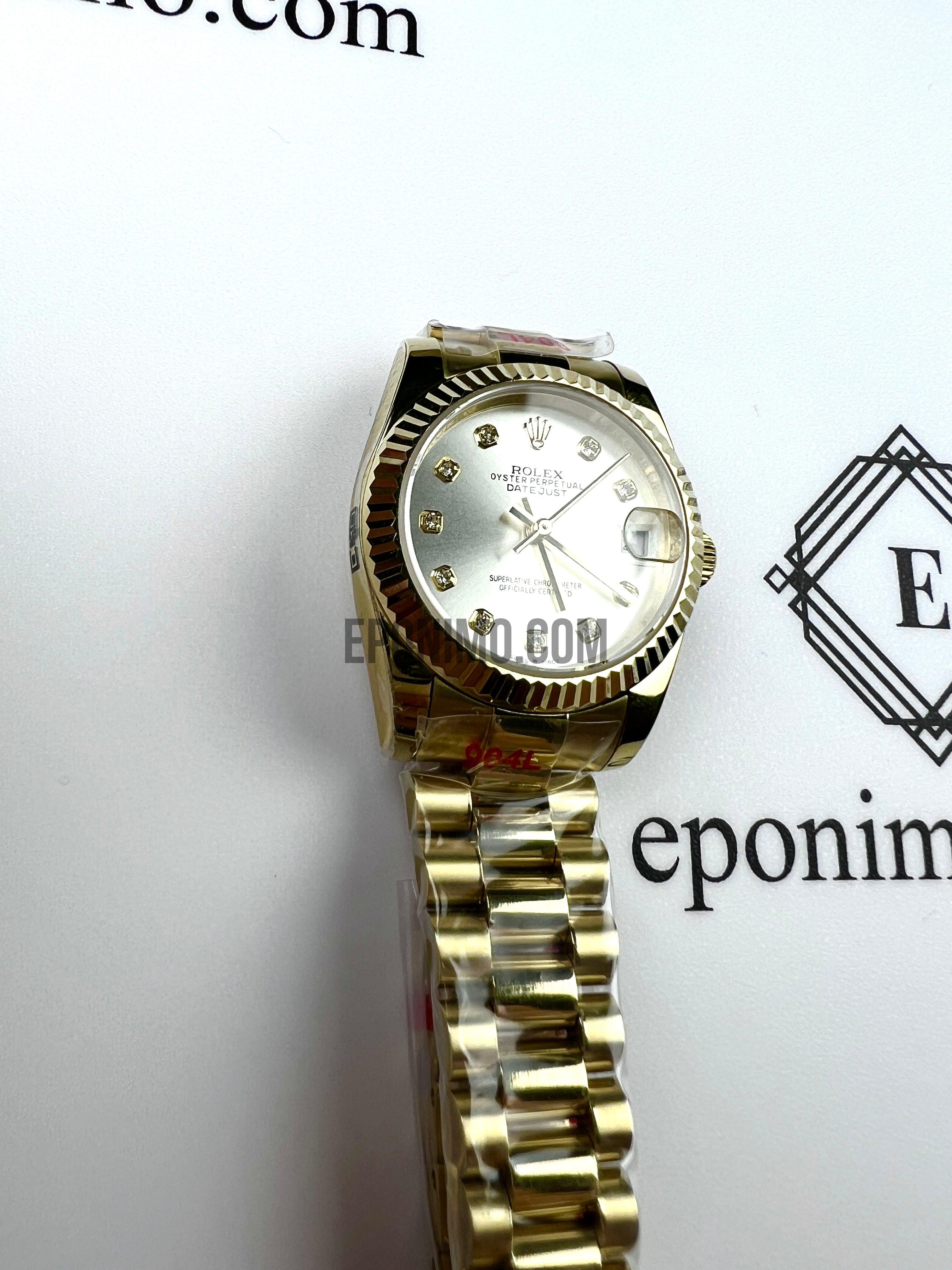 Ανοξείδωτο ατσάλι 904L, χρυσό χρώμα, αυλακωμένη (fluted bezel) |
