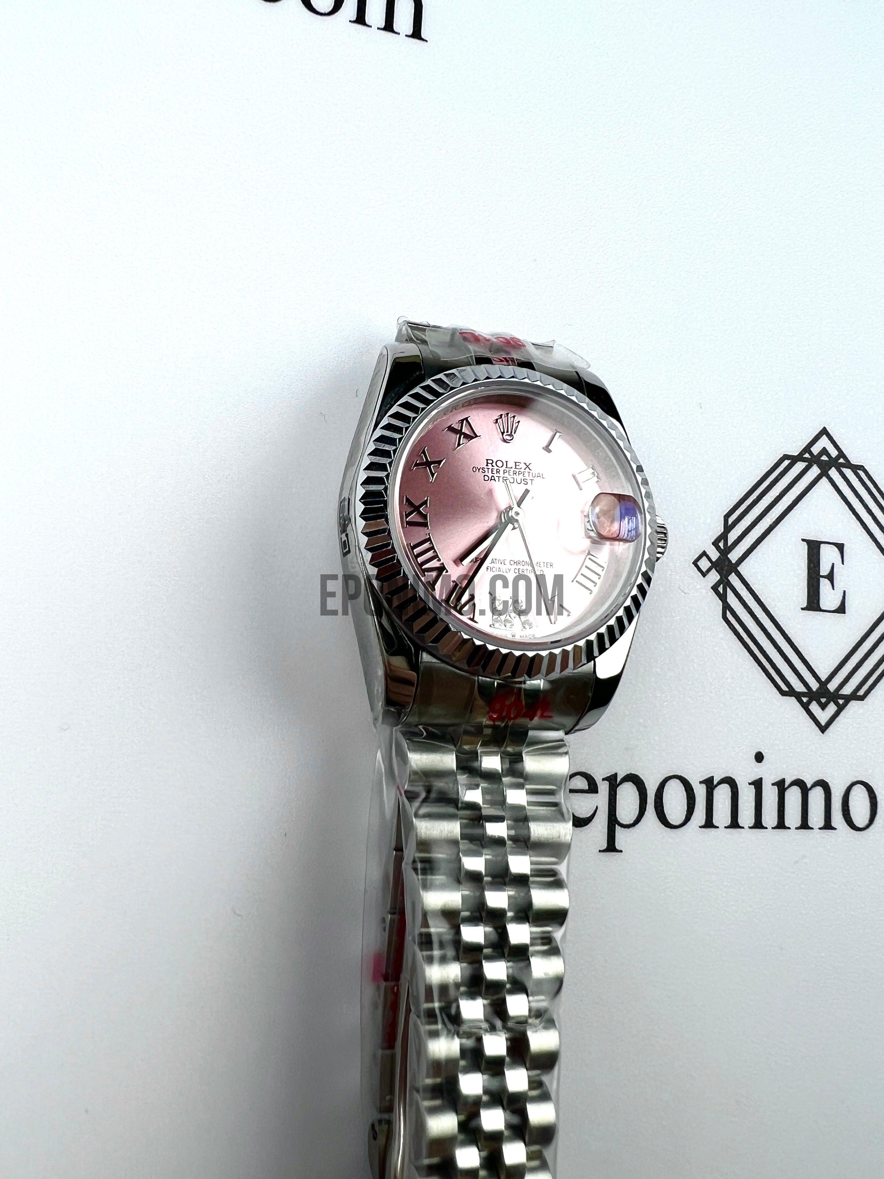 Με 31 χιλιοστά διάμετρο, γυναικείο, κατασκευασμένο εξ'ολοκλήρου από συμπαγές ανοξείδωτο ατσάλι. Φοράει αντιχαρακτικό κρύσταλλο ζαφειρίου και αυτόματο μηχανισμό. Αδιάβροχο.