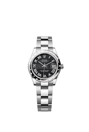 Datejust 31 Bright Black Roman, Diamond-set Domed Bezel, Oyster Bracelet