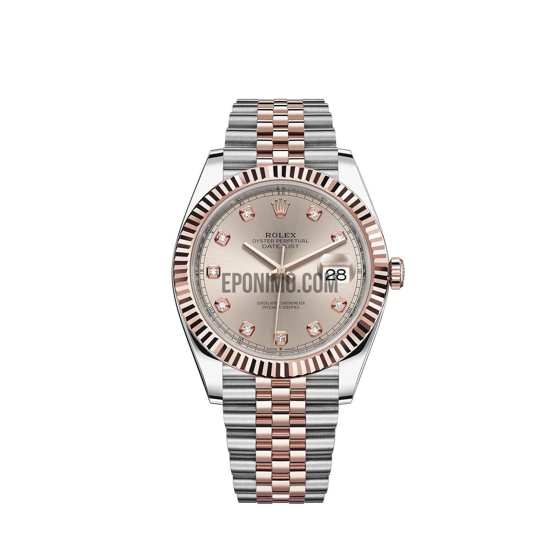 Datejust 41 Everose Rolesor, Diamond-set Sundust Dial