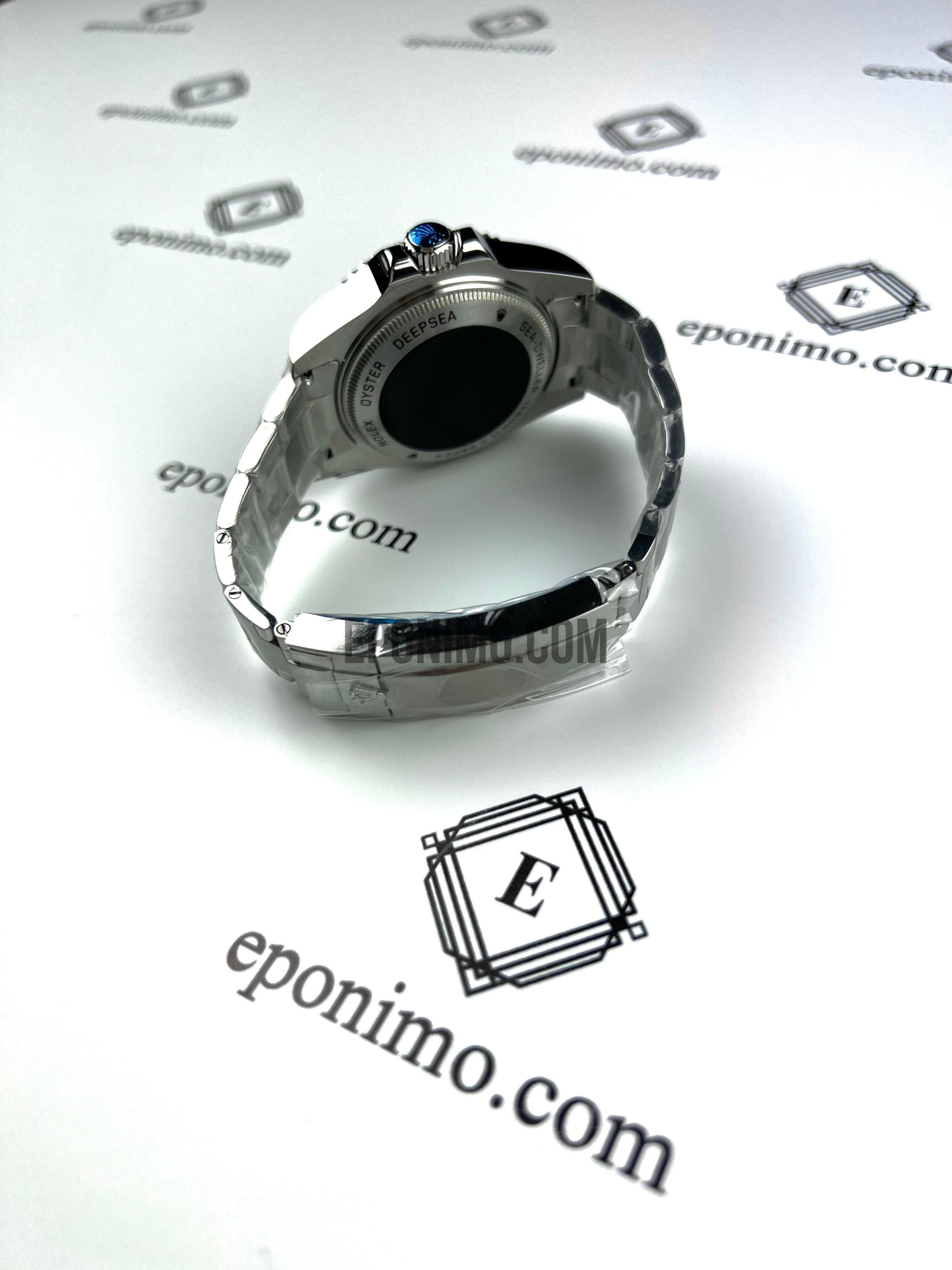 Με 44 χιλιοστά διάμετρο, ανδρικό, κατασκευασμένο εξ'ολοκλήρου από συμπαγές ανοξείδωτο ατσάλι. Φοράει αντιχαρακτικό κρύσταλλο ζαφειρίου και αυτόματο μηχανισμό. Αδιάβροχο.