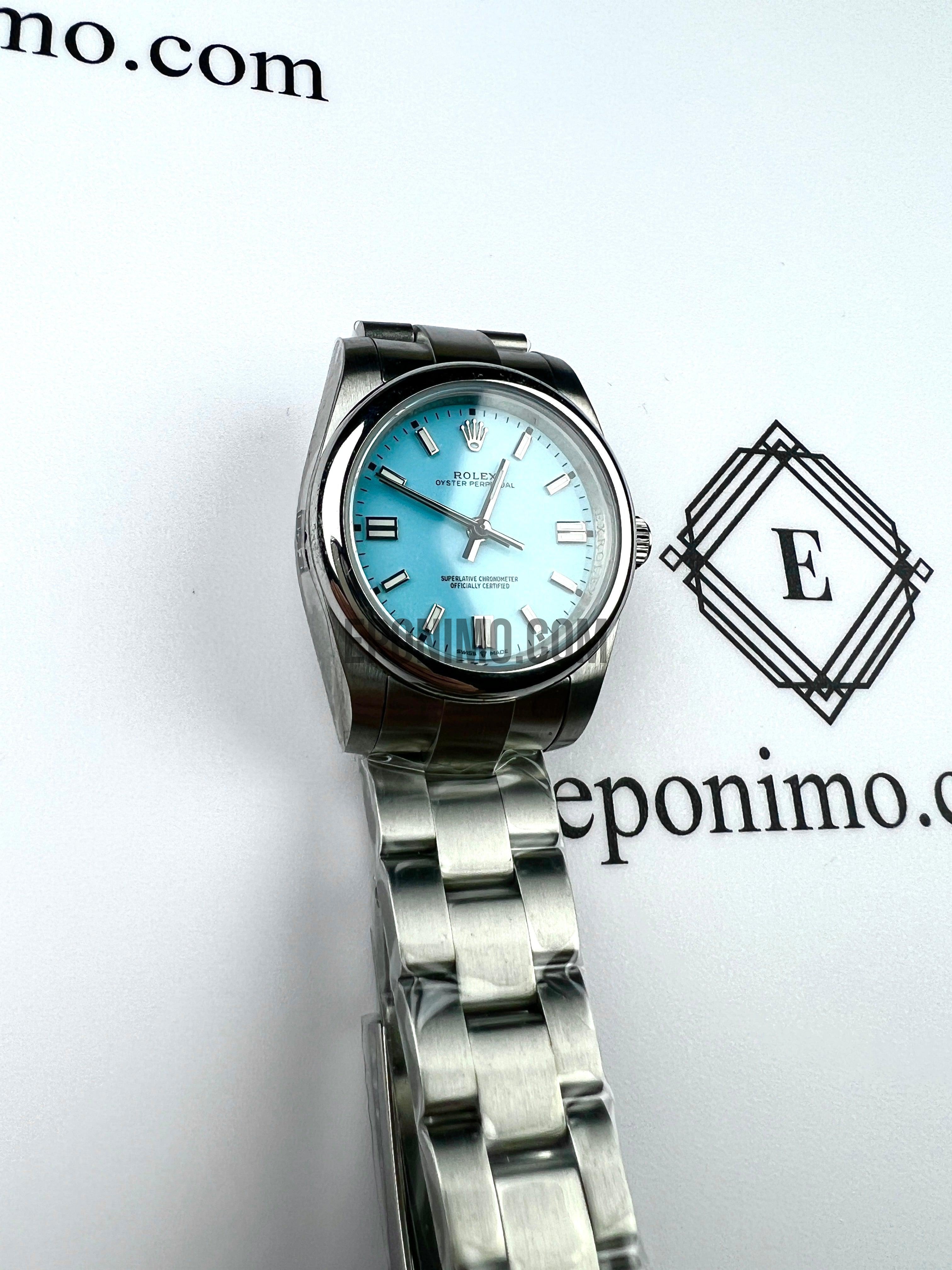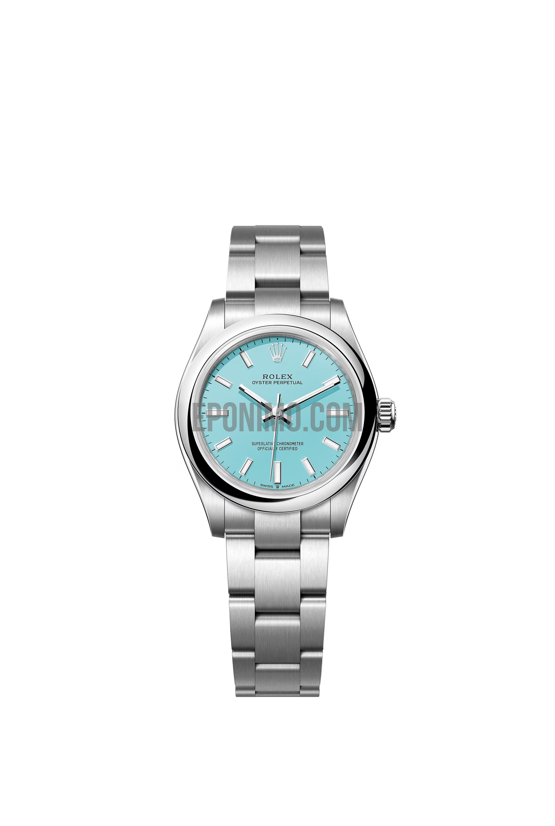 Με 31 χιλιοστά διάμετρο, γυναικείο, κατασκευασμένο εξ'ολοκλήρου από συμπαγές ανοξείδωτο ατσάλι. Φοράει αντιχαρακτικό κρύσταλλο ζαφειρίου και αυτόματο μηχανισμό. Αδιάβροχο.
